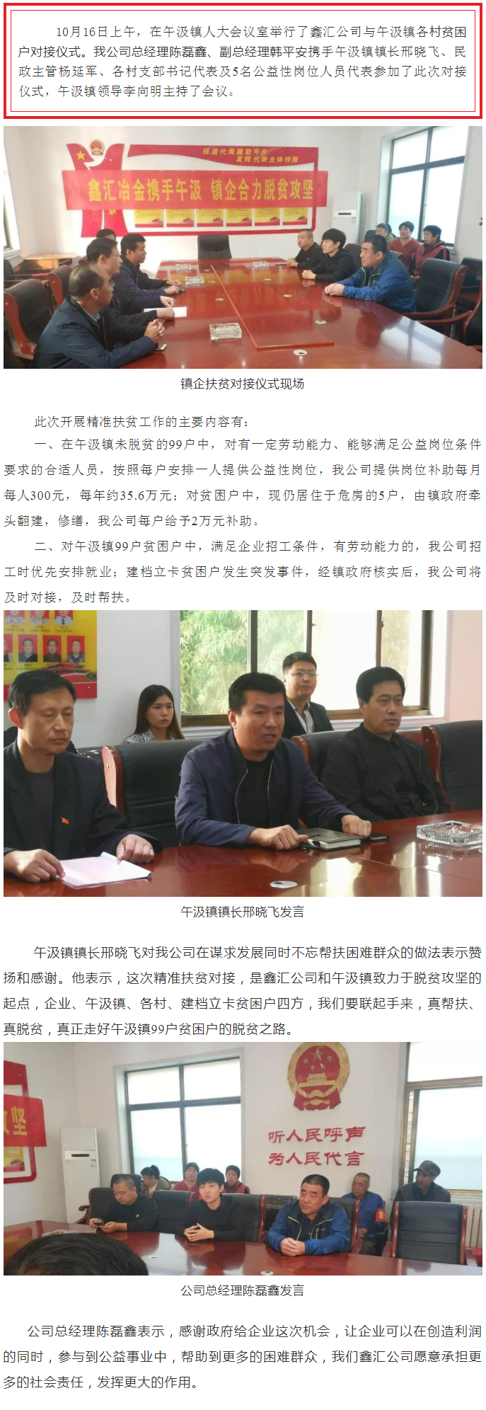 新聞摘要:鑫匯冶金攜手午汲,鎮企合力脫貧攻堅