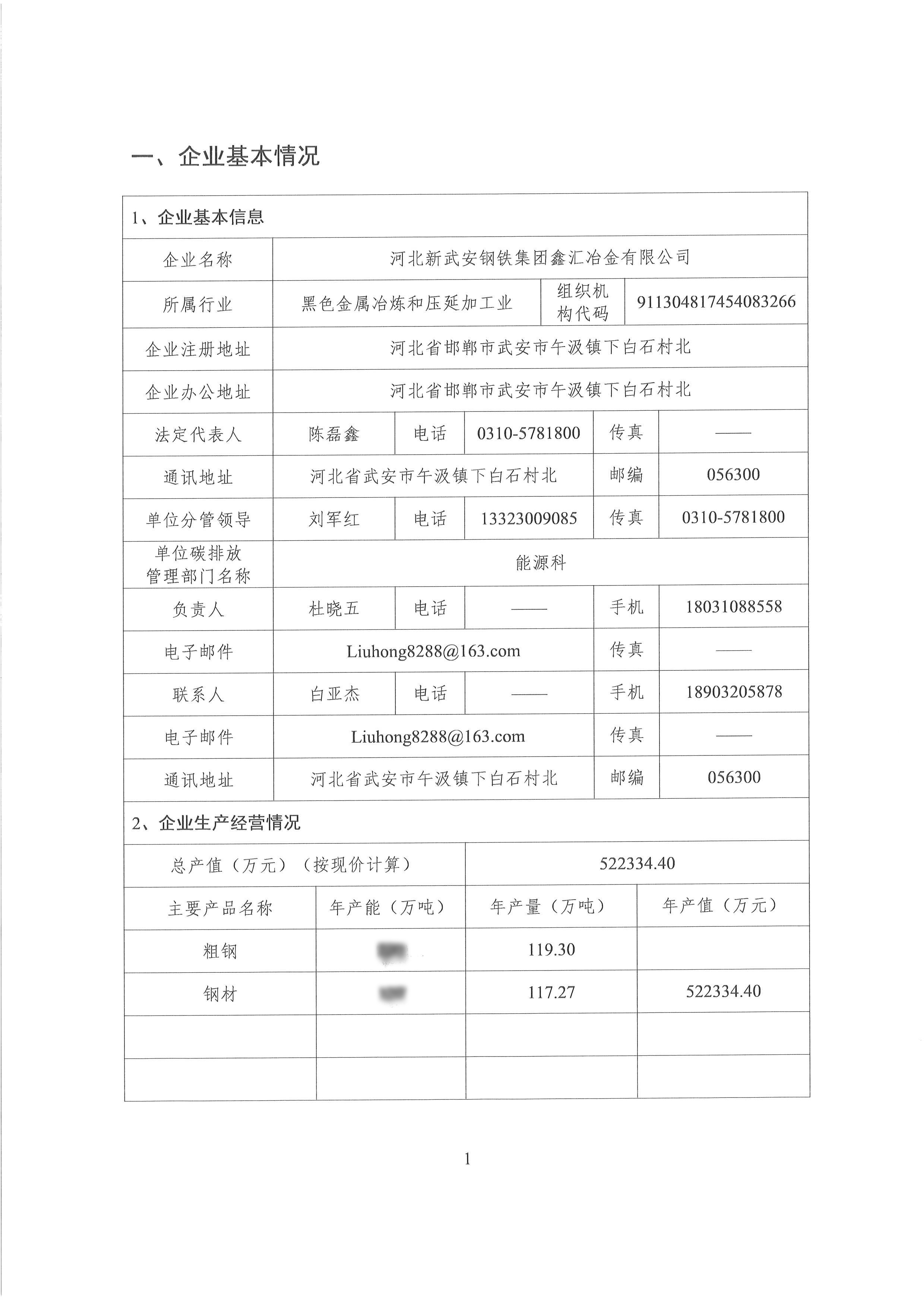 2021年河北新武安鋼鐵集團鑫匯冶金有限公司碳排放報告