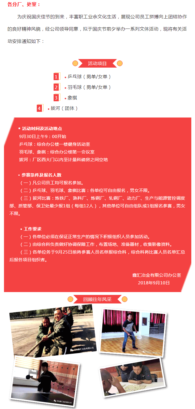 新聞?wù)?鑫匯公司關(guān)于舉辦國慶節(jié)文體活動(dòng)的通知